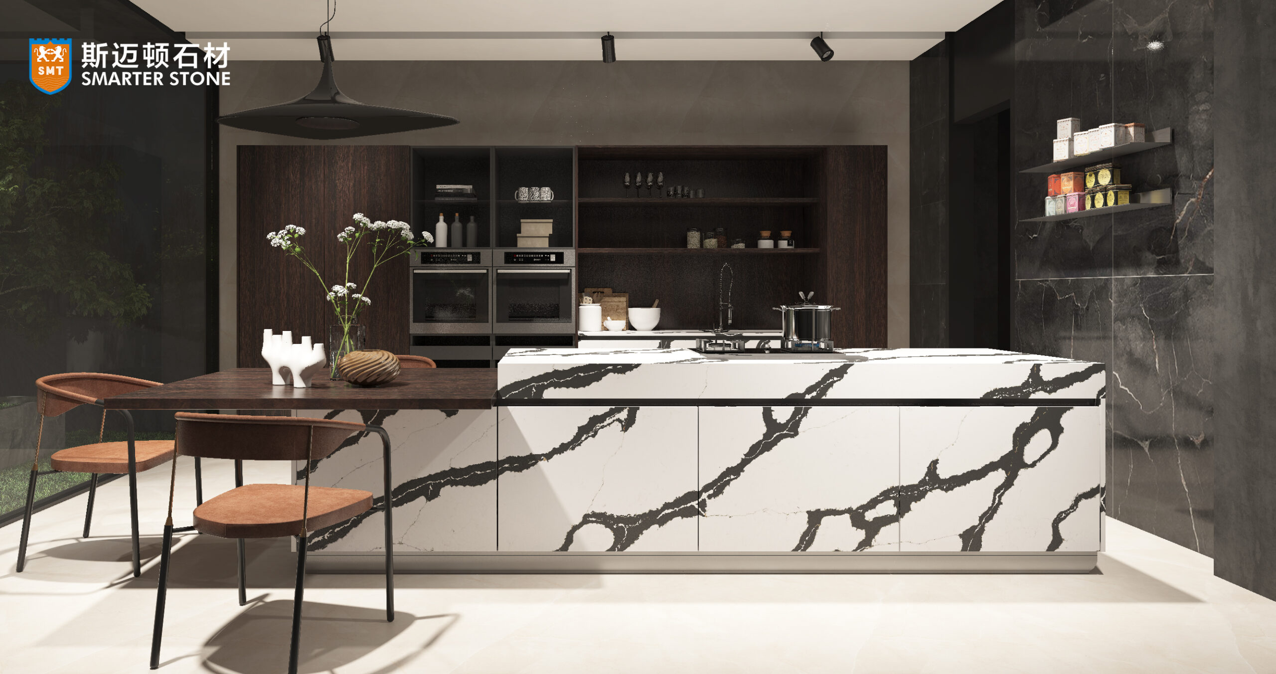 Color: Calacatta white Panda Black